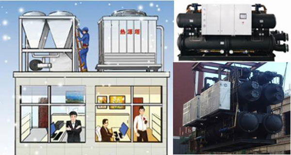 Atmospheric energy heat source tower system - completely eliminate the boiler, realize one machine three uses ( refrigeration, heating, making domestic hot water integration ).